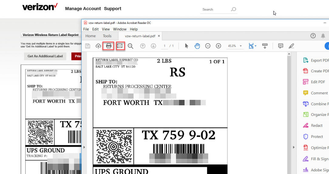 We make sending back your device easy by enabling you to print free return labels. To print a return label while logged in to My Business Wireless, you must have eligible user role permissions (Primary Contact, Admin, Analyst or Buy), and the original order(s) must have been placed within the last 30 days.