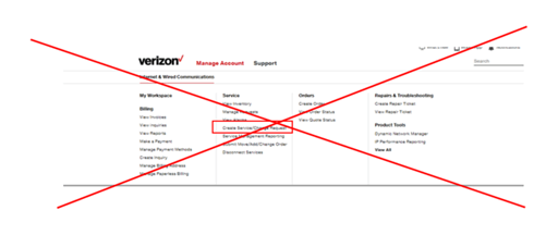 Note: Please do not attempt to open a normal Change Request under the Services menu in the Verizon Enterprise Center portal.